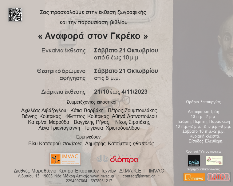 Η ομαδική έκθεση αποτελείται από μια εντυπωσιακή συλλογή έργων σημαντικών σύγχρονων Ελλήνων ζωγράφων που εμπνεύστηκαν από την «Αναφορά στον Γκρέκο».